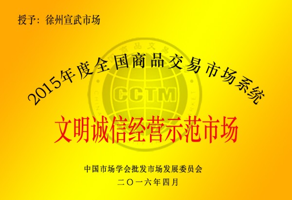 公司獲文明誠信經(jīng)營示范市場(chǎng)稱號(hào)